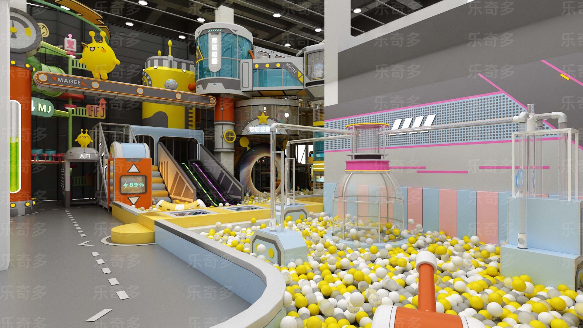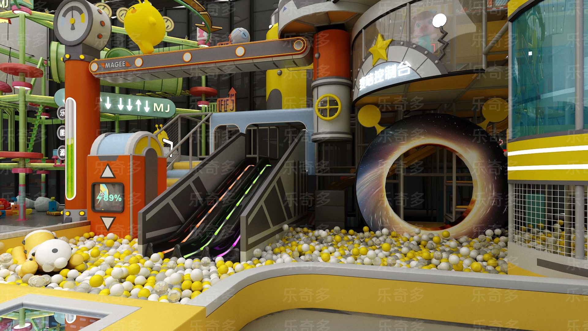 項目玩法:沙池探寶,海洋球池,波浪滑梯,互動投影,組合滑梯,手工區,彈跳迷宮、兒童小蹦床,角色扮演,公主屋,親子餐廳等。